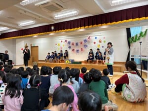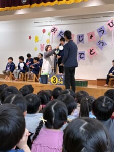 先生からは合唱のプレゼントをしましたよ。『かえるのうた』や『森のくまさん』、『どんな色が好き!』を