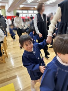 年少クラスから、園帽・園児服を着用し入園式に参加しています。