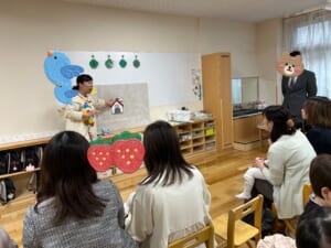入園のつどいでは、担任の先生の紹介や、大型絵本、パネルシアターを上手に見てくれましたね。